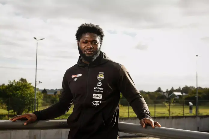 Dylan Addae-Wusu posando con la indumentaria de su nuevo equipo // Foto: Trefl Sopot.