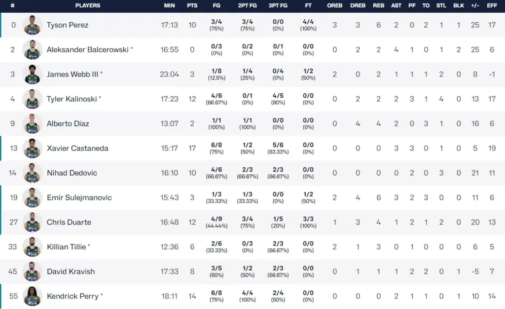 El Unicaja inicia con buen pie su objetivo de revalidar título de BCL por tercera vez. El cuadro de Ibon Navarro se impuso al Mersin SC de manera muy contundente por 97-66. Encuentro de altas cifras individuales para los cajistas. Perry, Tyson Pérez y Chris Duarte alcanzaron los 14,10 y 12 puntos respectivamente, pero el MVP de hoy fue otro. Xavier Castañeda anotó 17 puntos para consagrarse como fichaje y promediado un 75% en tiros de campo con 5/6 en triples. El cuadro turco no puedo hacer nada ante un Unicaja que arrasó en los cuatro cuartos. Estas son las estadísticas del Unicaja VS Mersin SC de la 1ª Jornada de la BCL.