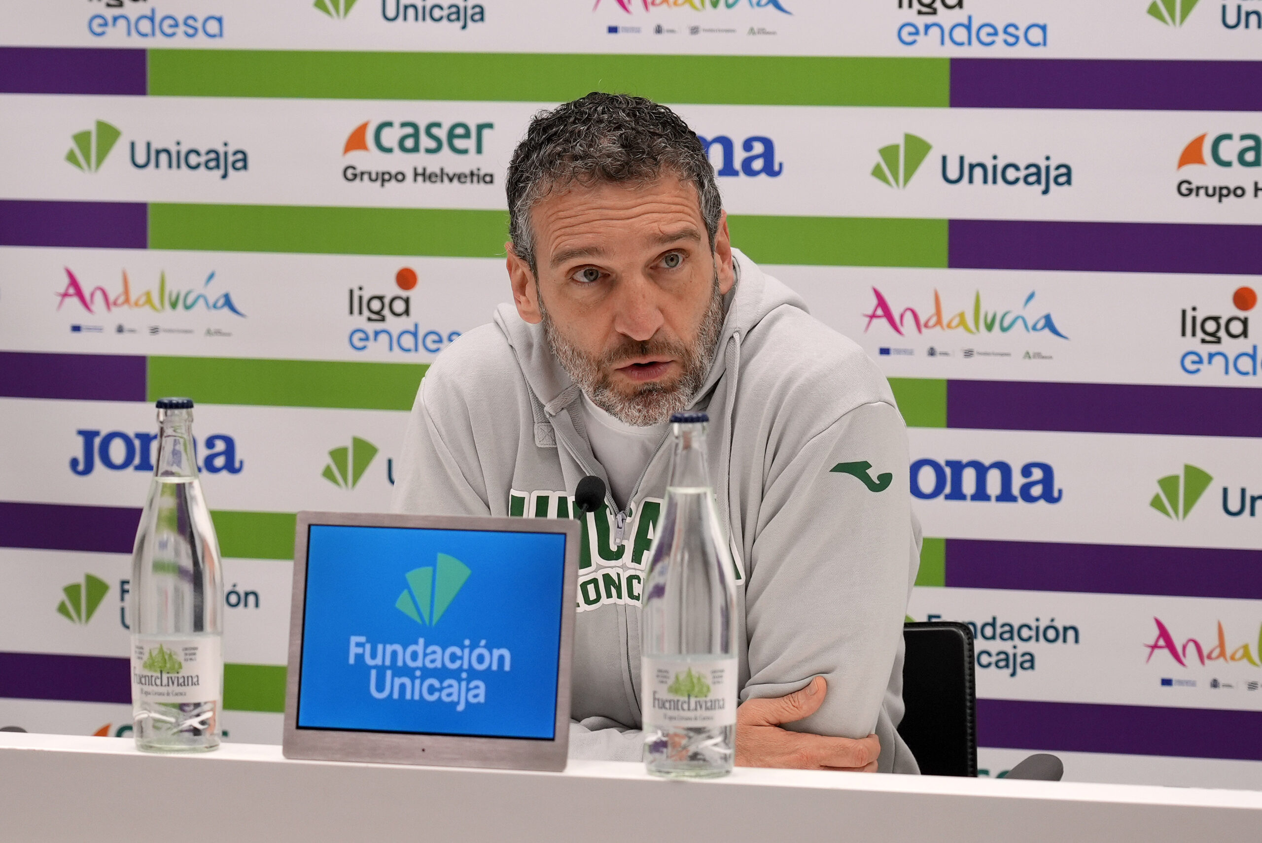 Ibon Navarro en la rueda de prensa previa al duelo ante el Valencia Basket // Foto: Unicajab.Fotorpress. (Raisa Pozo).