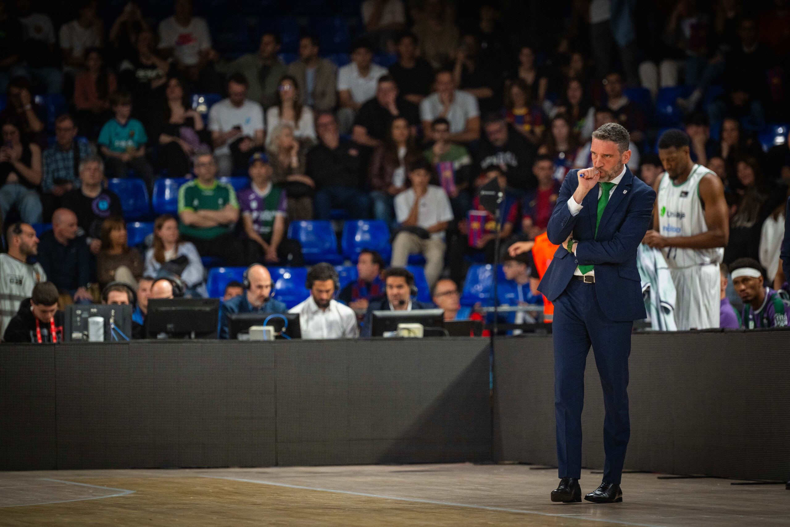 Valoración del partido. «Bueno, creo que un primer cuarto que viene marcador por el acierto del Barcelona en el tiro de tres puntos con 4/5. Cogen esa ventaja. No hemos estado bien a nivel de gestión de faltas. Hemos dejado correr en ese primer cuarto, algo que el Barcelona hace bien y que necesitábamos controlar para que no cogiesen confianza. Hemos ajustado mejor en el segundo cuarto, con un quinteto que nos ha dado solidez para controlar el juego a campo abierto del Barcelona».