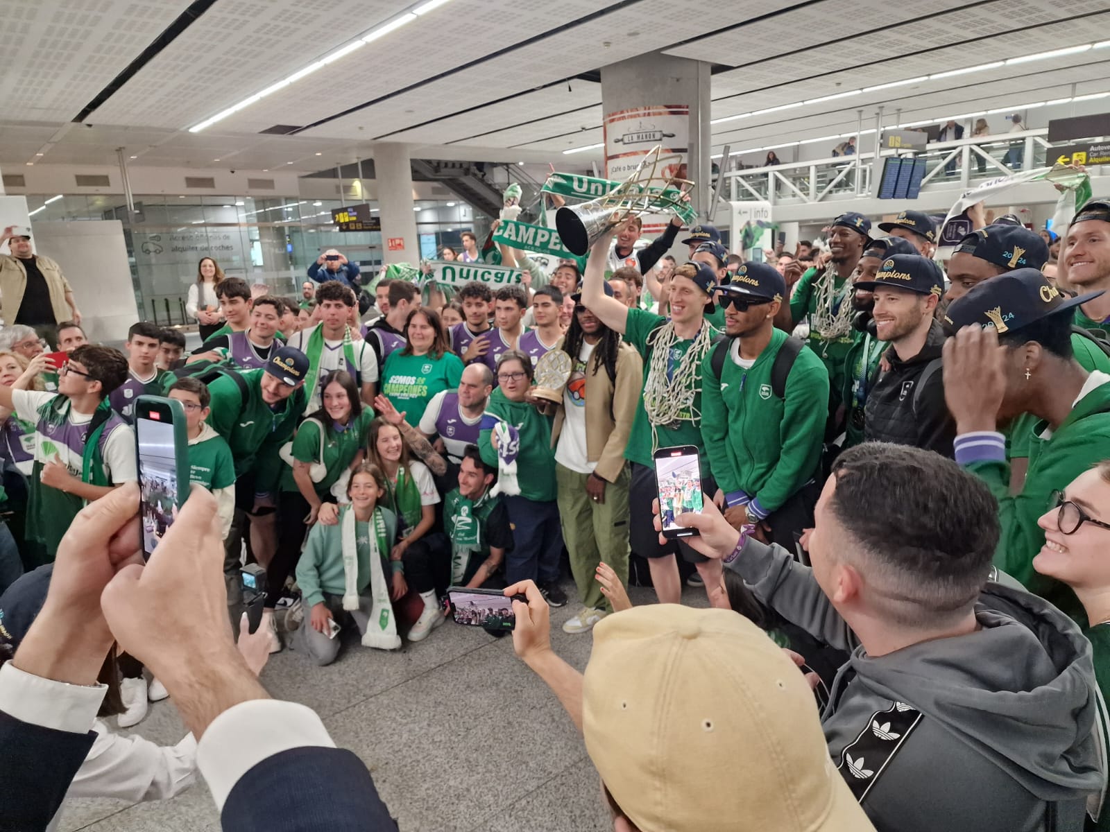 Más de un centenar de aficionados reciben en el aeropuerto al campeón de la BCL