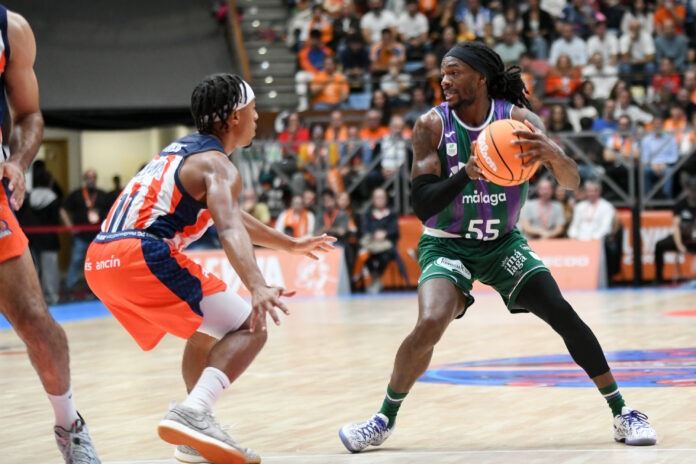 Primer cuarto en el que los cajistas declaraban intenciones. Nihad Djedovic abría el marcador del encuentro a favor de los malagueños con uno de sus triples. Alguna canasta de los de Leyma Coruña se cuela entre una sucesión de aciertos de tres de los verdes. Balcerowski, Tyson Pérez, Kam Taylor… (9-21). Trey Thompkins sale, se estrena y encesta su primer lanzamiento oficial con los gallegos. Desde la línea de 6,75m mantiene con vida a los suyos (16-22). Los diez minutos iniciales se cierran con un Tyson Pérez líder y un equipo local que quiere aguantar el pulso (19-27).