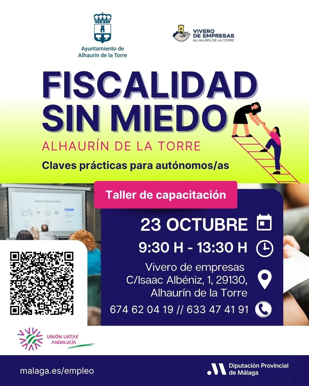 Cerca de 180 autónomos de municipios pequeños del interior de la provincia participarán en los talleres formativos de fiscalidad, creación de marca e inteligencia artificial impulsados por la Diputación de Málaga, que se celebrarán a partir de mañana y hasta el 21 de noviembre en Alhaurín de la Torre, Archidona y Cuevas de San Marcos. Se trata de talleres enmarcados en el proyecto ‘Revitaliza Málaga rural’, desarrollado por la Unión de Asociaciones de Trabajadores Autónomos y Emprendedores de Andalucía (UATAE) con una subvención del ente provincial de 40.000 euros.