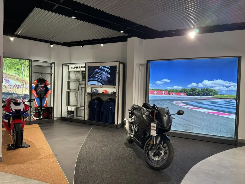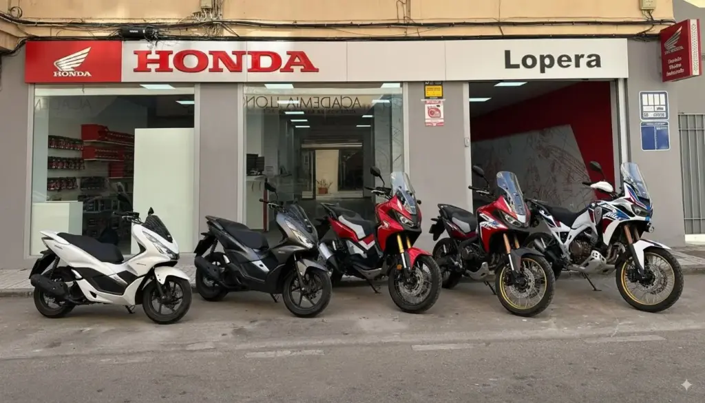 Además, contamos con la inestimable presencia de José Manuel Jiménez, gerente de Honda Lopera: «Los primeros que comprueban lo bien que nos han venido las obras y la remodelación son los clientes. Nos dan la enhorabuena. Nos hacía falta al ser unos referentes en Málaga. Todos estamos muy contentos de que la empresa haya apostado por esto y que haya quedado tan bien. Nos gustaba la idea de la amplitud en la tienda y que el cliente pueda subirse en la moto y se sienta cómodo. Esto es un concepto que Honda está impulsando a nivel nacional para que el cliente sienta que ya es suya. El 80% de las personas que prueban, compran. Los números hablan por si solos. La Honda PCX te la puedes llevar con seguro gratis y matriculada. Es la joya de la corona. Hay muchísimas opciones y dejamos a los clientes hasta probarlas si tiene dos años de carnet».