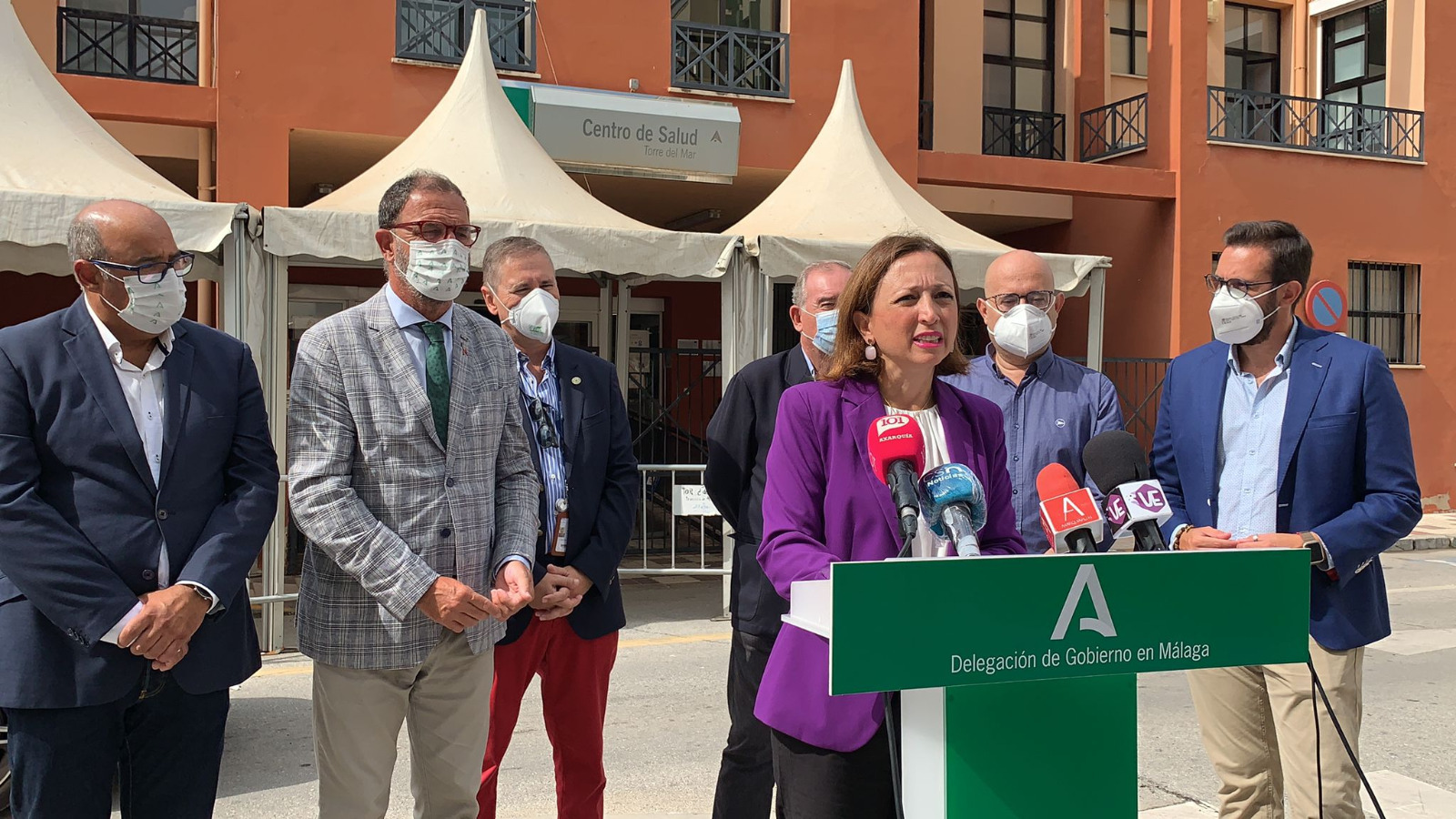 La delegada del Gobierno andaluz en Málaga, Patricia Navarro, en una visita al centro de Salud de Torre del Mar, junto al delegado territorial de Salud y Familias, Carlos Bautista, ha anunciado que a partir de octubre se retomará la presencialidad en los centros de salud de la provincia de Málaga.