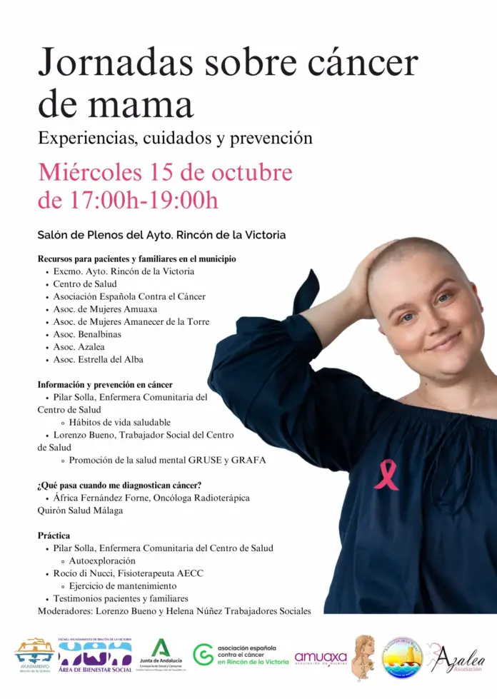 El Ayuntamiento de Rincón de la Victoria, a través del Área de Bienestar Social, en colaboración con la Asociación Española Contra el Cáncer (AECC), CUDECA, y asociaciones de mujeres del municipio, ha organizado una jornada sobre el cáncer de mama que se celebrará mañana 15 de octubre.