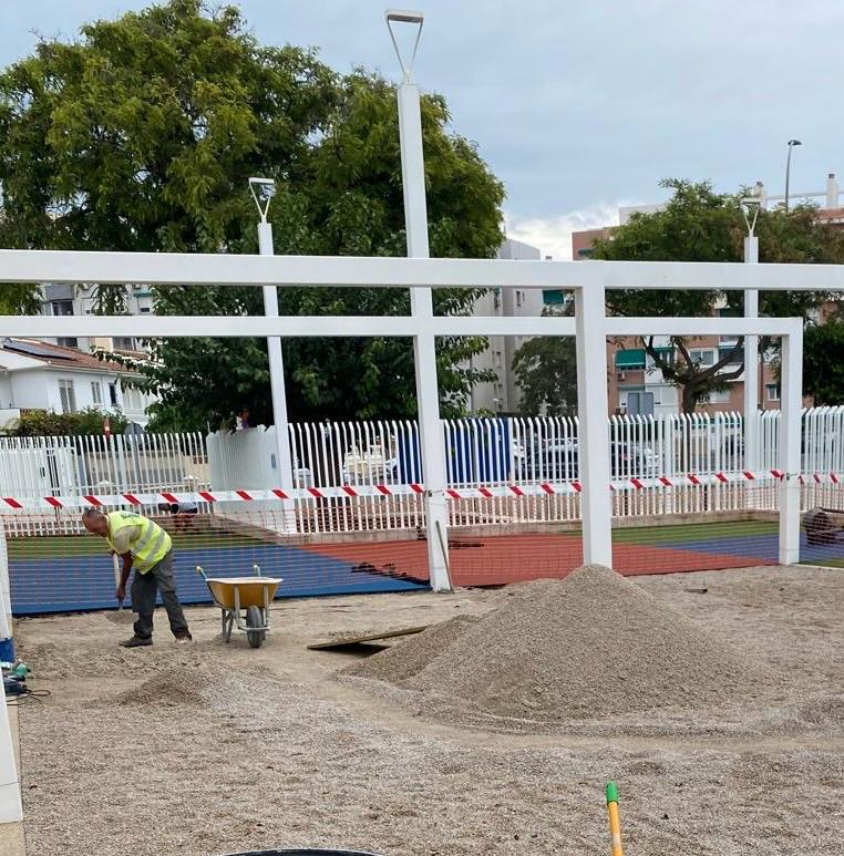 Los trabajos, que comenzaron hace unos días, están consistiendo en aumentar la superficie útil para la actividad deportiva, y la colocación de nuevo material deportivo consistente en tres juegos TRX y tres juegos de pesas. Esta superficie se mejorará mediante la sustitución de una zona de pavimento de gravilla.