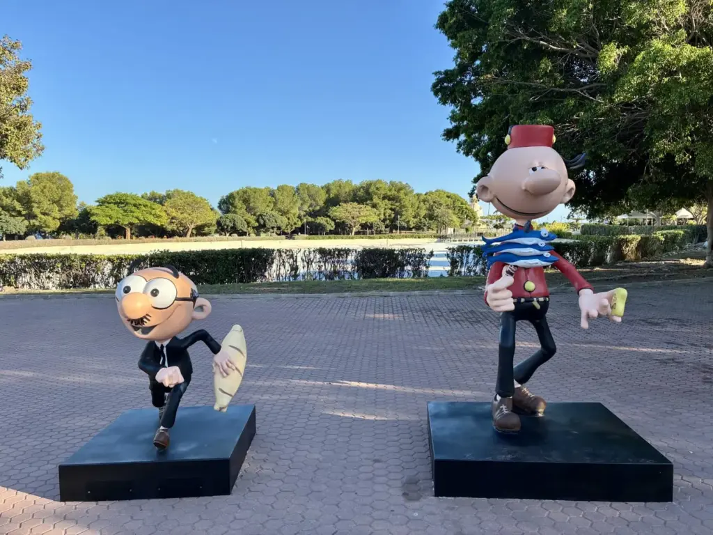 Mortadelo y Filemón, El Botones Sacarino, Rompetechos, Otilio, Pepe Gotera o el propio Francisco Ibáñez ya se encuentran en el Parque de La Batería. Realizados en resina de poliéster y fibra de vidrio, se suman a otras creaciones personalizadas con motivos que evocan a Torremolinos como el propio Mortadelo con un espeto de sardinas y Otilio junto a la Torre de Pimentel. Con tamaños que oscilan entre los 1,20 y los 2,50 metros, el espacio está llamado a convertirse en un nuevo atractivo turístico y cultural.